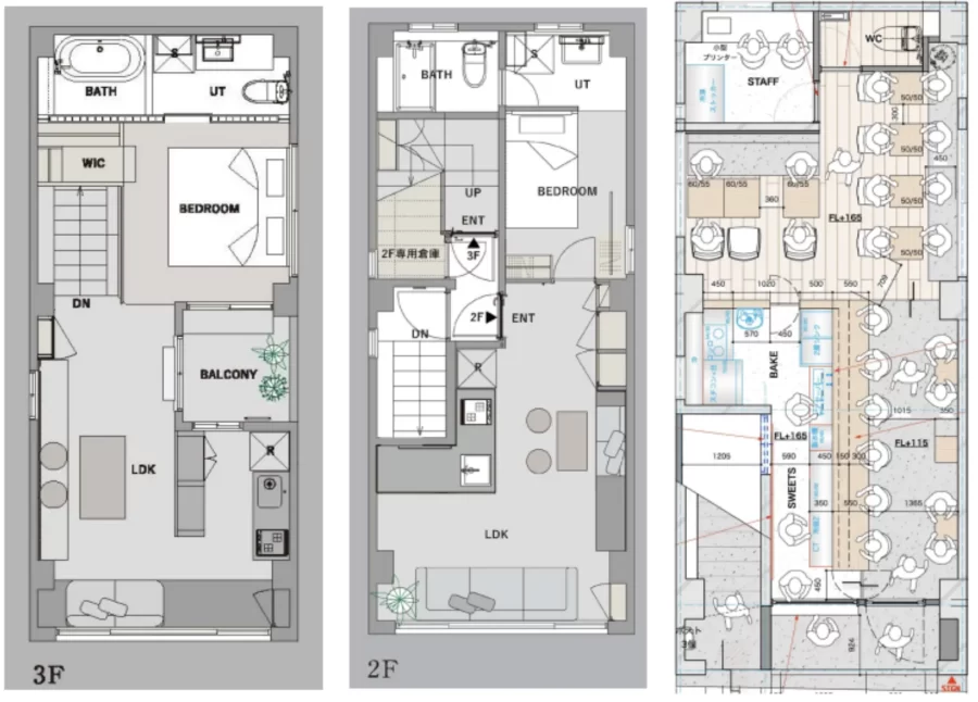 住居として暮らしながら事務所や制作拠点として使う、予約制の店舗やショールームとして運用する、レンタルスペースとして体験そのものを提供する。様々な使い方ができ、さらにはフロアごとに用途を切り替えながら収益化を図ることもできるでしょう。