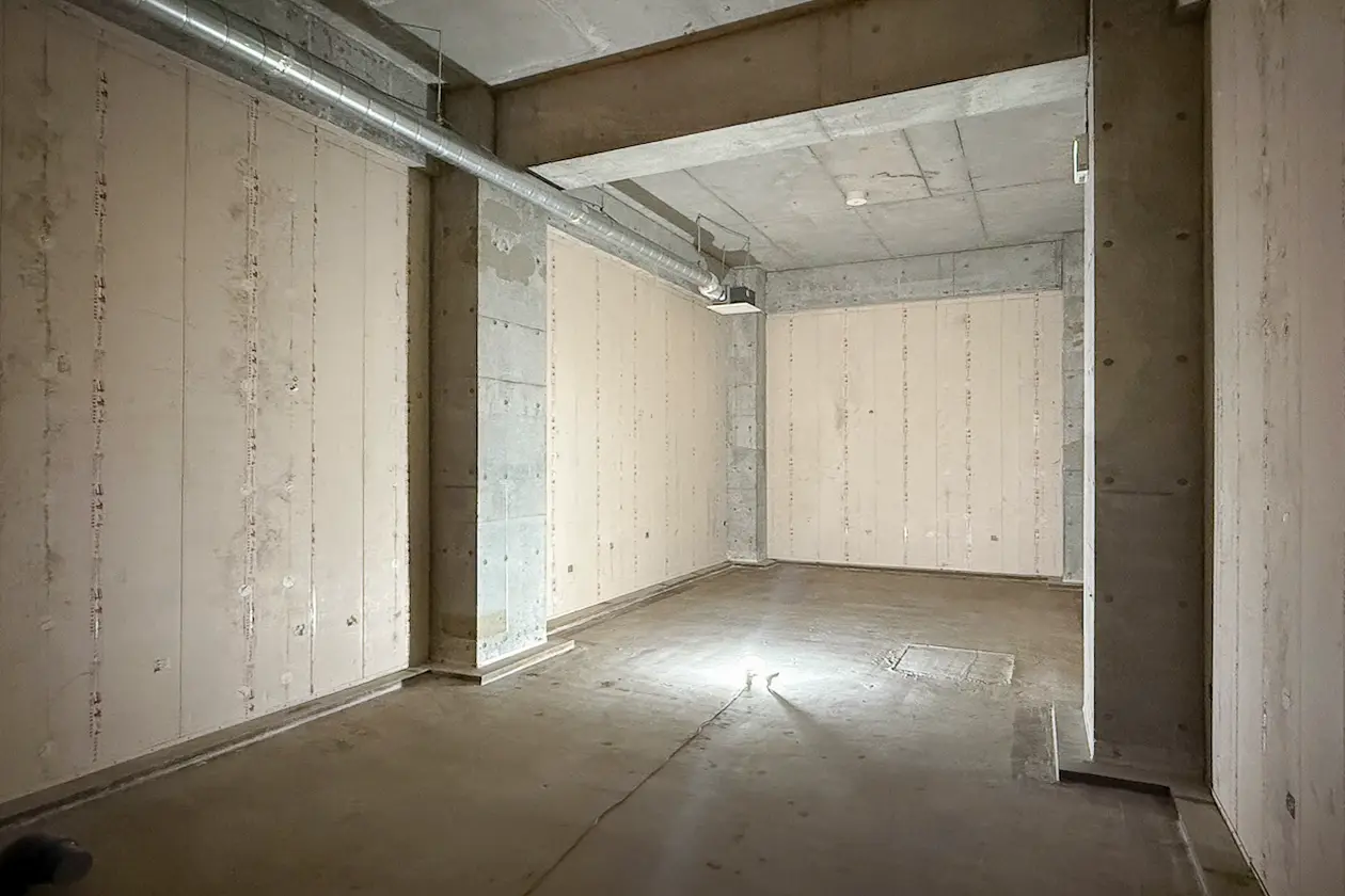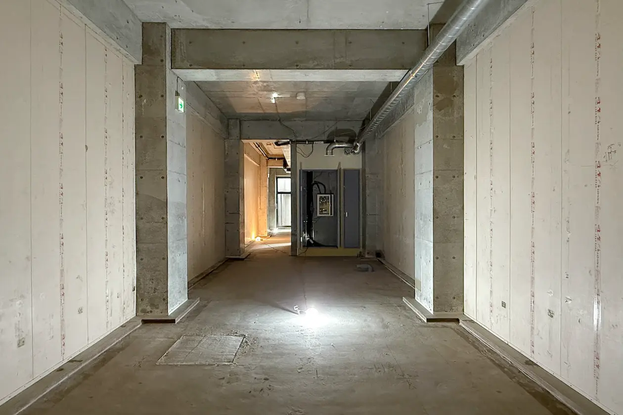 設計の自由度と立地の強さを兼ね備えた、天井の高いスケルトンの地下区画。