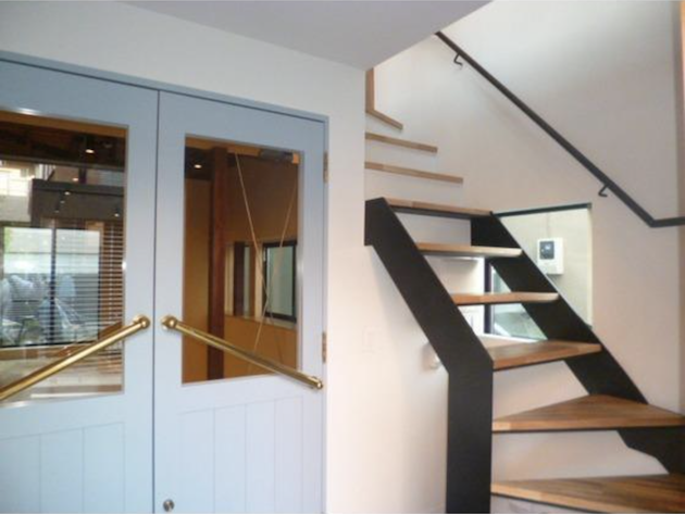 スペースを扉と階段で上手く分けているため、一階をショールームやアトリエ、2階を事務所など、用途を変える事ができます。
