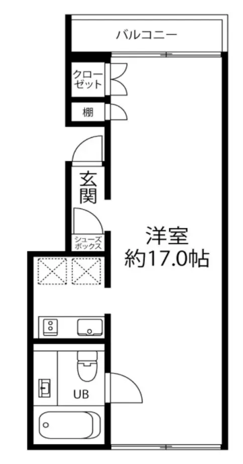 約39㎡のワンルームは、視線を遮るもののないストレートな空間構成。