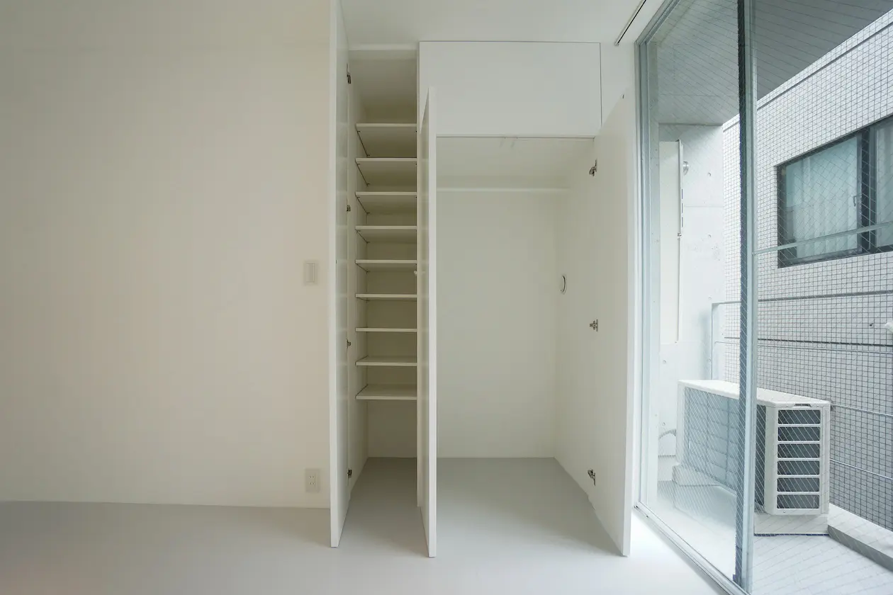 白ベースのニュートラルな内装は、ブランドの世界観を邪魔せず、むしろ引き立てる背景として機能します。また、収納スペースもしっかり確保されているため、バックヤード的な使い方にも困りません。