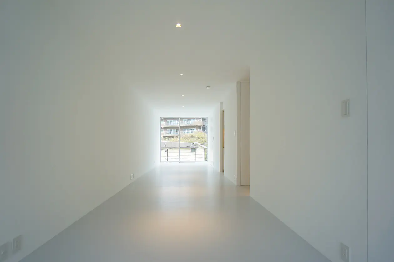 室内に入るとまず感じるのは、徹底して整えられた「白」。