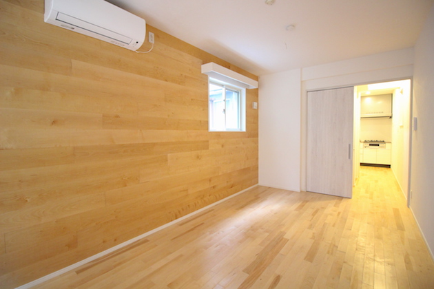 1Fはこの4帖弱のお部屋とバスルームなどの水回りに水回りになります、SOHOや事務所利用であればこのお部屋はストレージルームといった位置付けになりそうです。