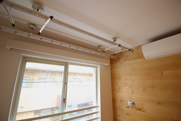 ハンドルで上下動ができる、本来であれば洗濯物を干すスペースですが、業種によってはディスプレイなどに利用できそうです。