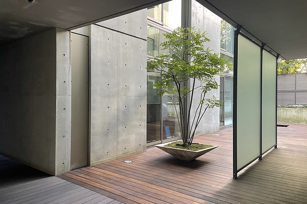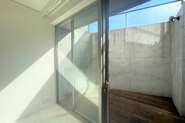 バルコニー部分は、無垢木材が使われており、ナチュラルな落ち着いた雰囲気です。
