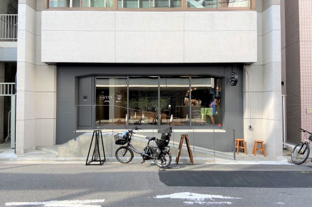 築地駅の出口前、カフェ風セットアップ