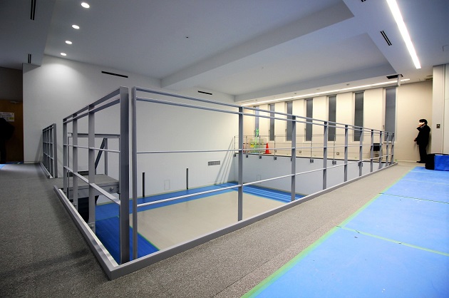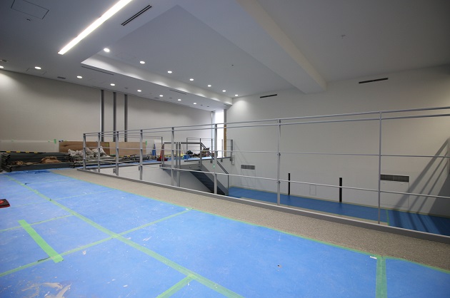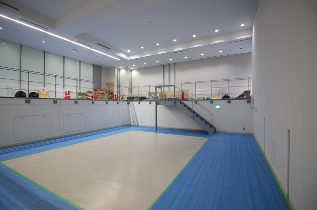 中央の吹き抜け部分をショールームとし、階段をのぼった周囲部分にテーブルを置いて商談スペースとするのに最適ではないでしょうか。周囲も天高3.2mあり圧迫感を感じさせません。