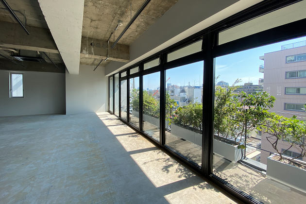 外観からも伺えた外苑西通り側は一面が窓面となっており開放感があります。