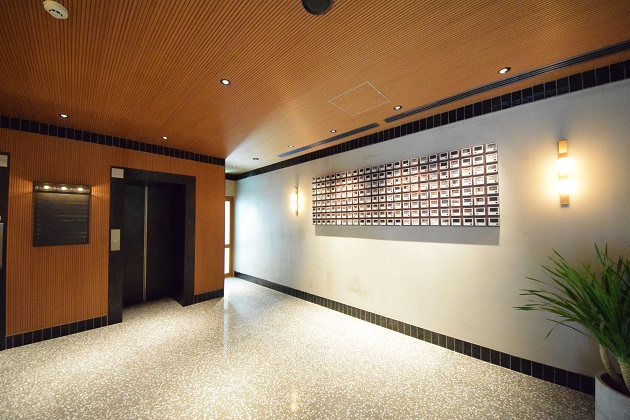 高級感があり洗練されたデザイン、エレベーターは2基利用可能です。