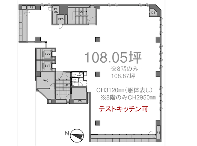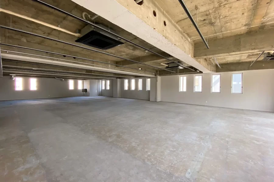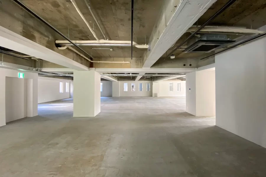 室内はワンフロアで357㎡と自由度が高く制約の少ない空間、天井高も3m程度確保できます。