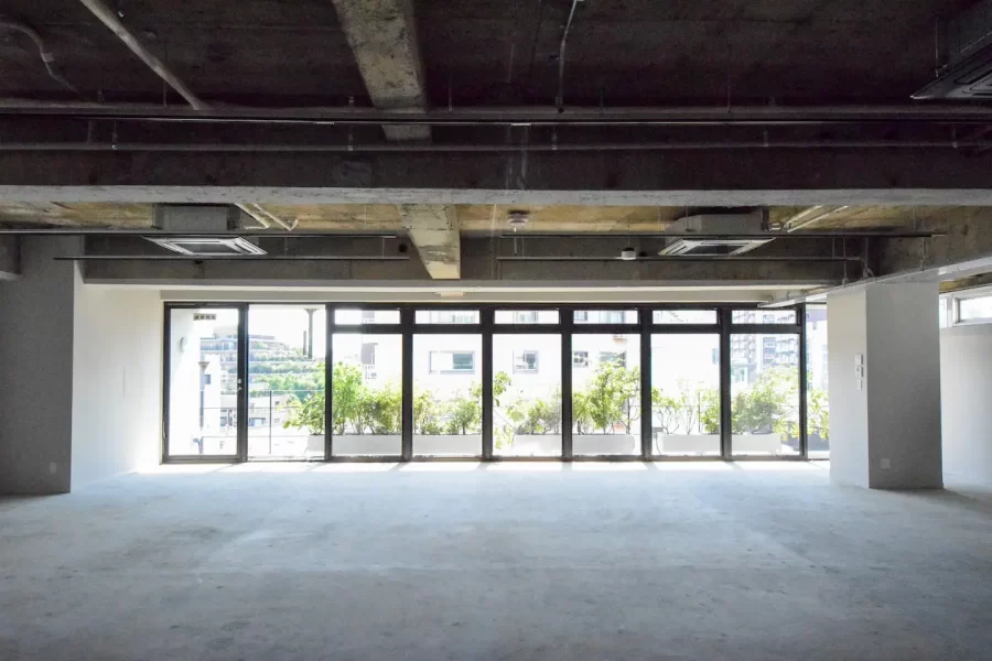 オフィスデザインにいて大幅なコストカットが見込めるのは嬉しいポイント。床はこのままの質感を活かしても良いですし、仕上げをカーペットかフローリングにするのも大きくイメージが変わるでしょう。