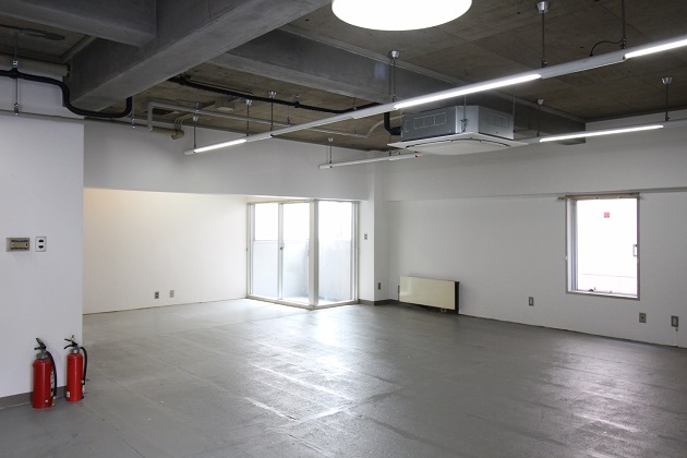 こちらの窓も大きく、採光豊かなフロアになっています。広々したスペースがたくさんあるので倉庫兼事務所を探している方に良さそうな物件。