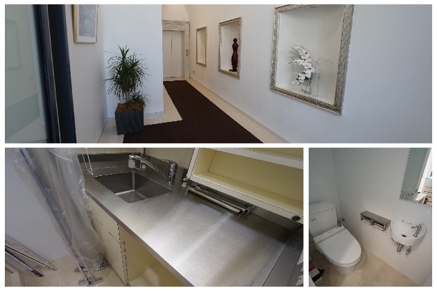 共用部のエレベーターホールもオーナーのこだわりで綺麗で高級感あるものになっている。水周りもほぼ新品のような状態。
