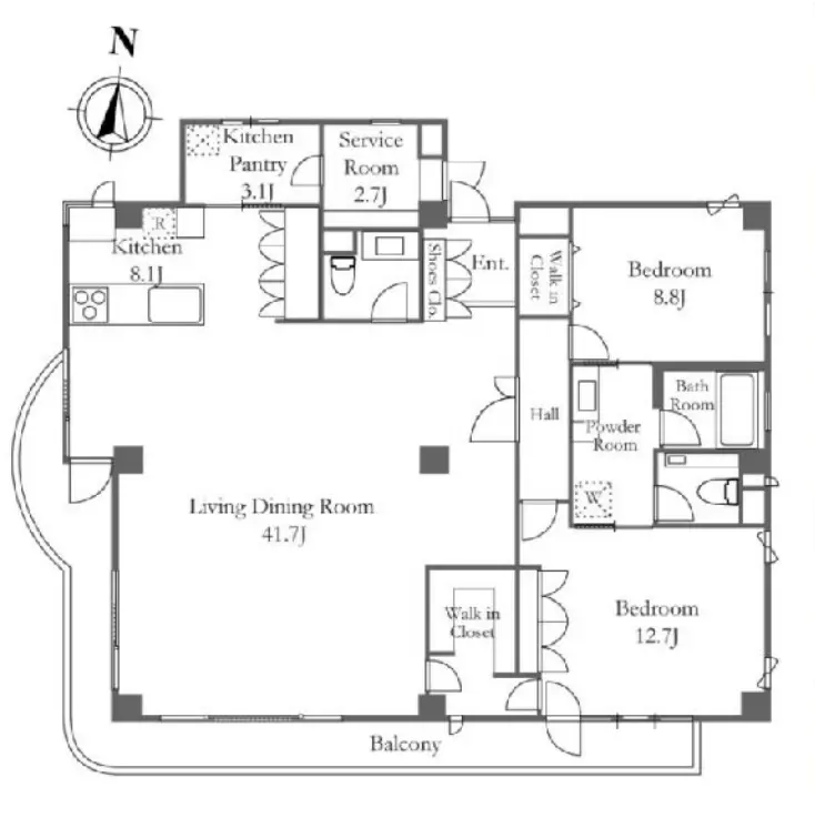 シューズクロークやウォークインクローゼットといった収納設備も十分整っており、広々と部屋を使うことができるでしょう。