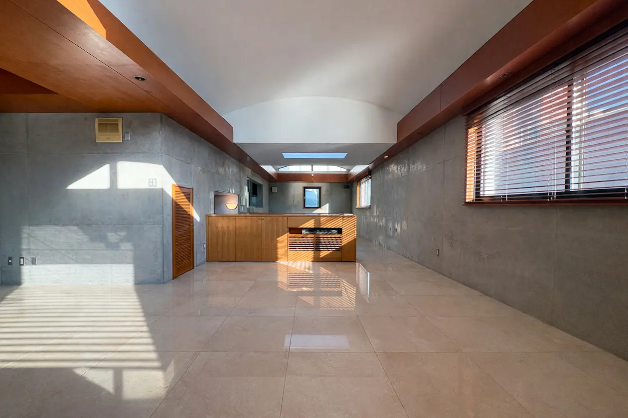 天井はアーチを描く開放的な構造。天窓もあり室内は明るい雰囲気を保てます。