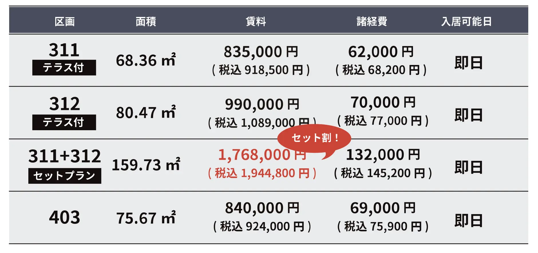 賃料:上記参照