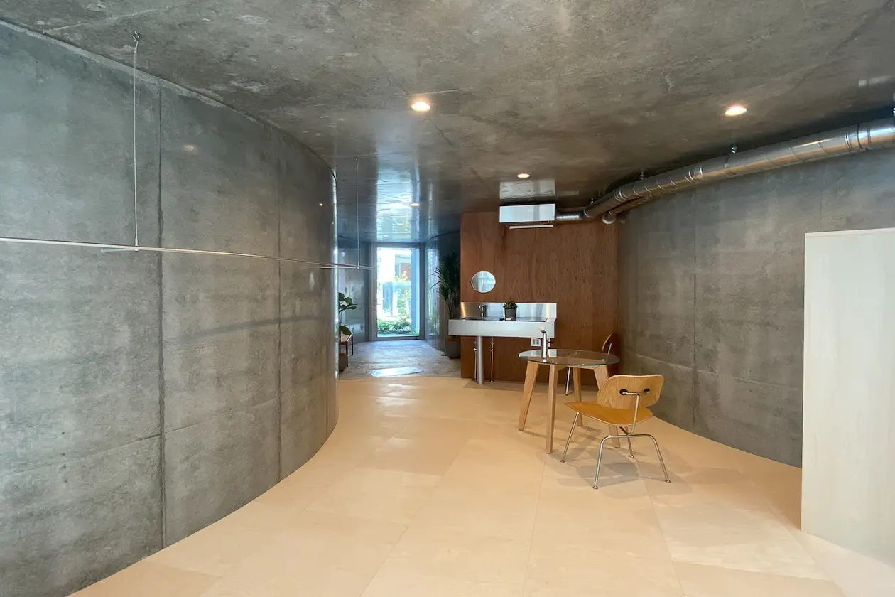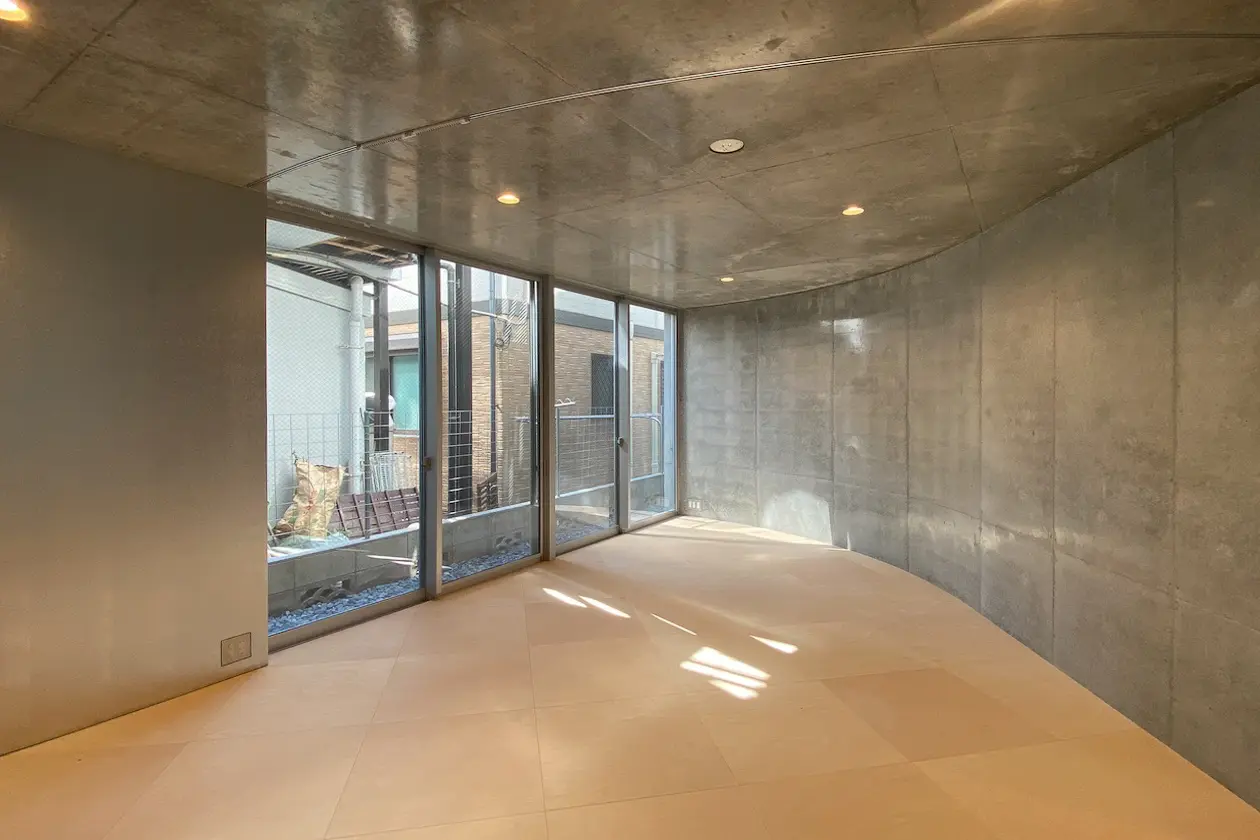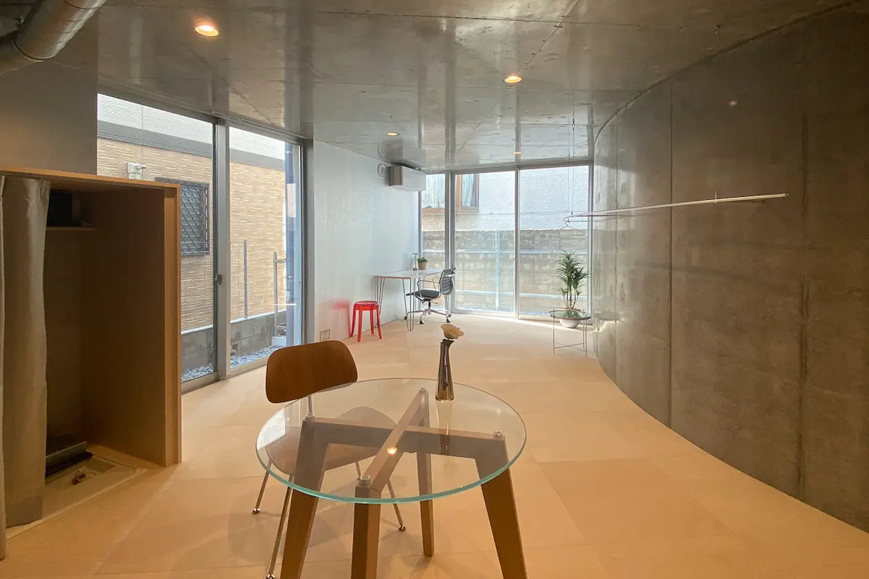 そんなエリアの住宅街にひっそりと佇む、美しい曲線を描いたアーティスティックな築浅デザイナーズオフィスをご紹介します。