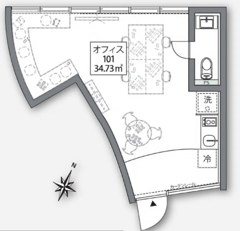 新宿新都心近くに建つ、アーチスチックな曲線のオフィスを使いこなして。