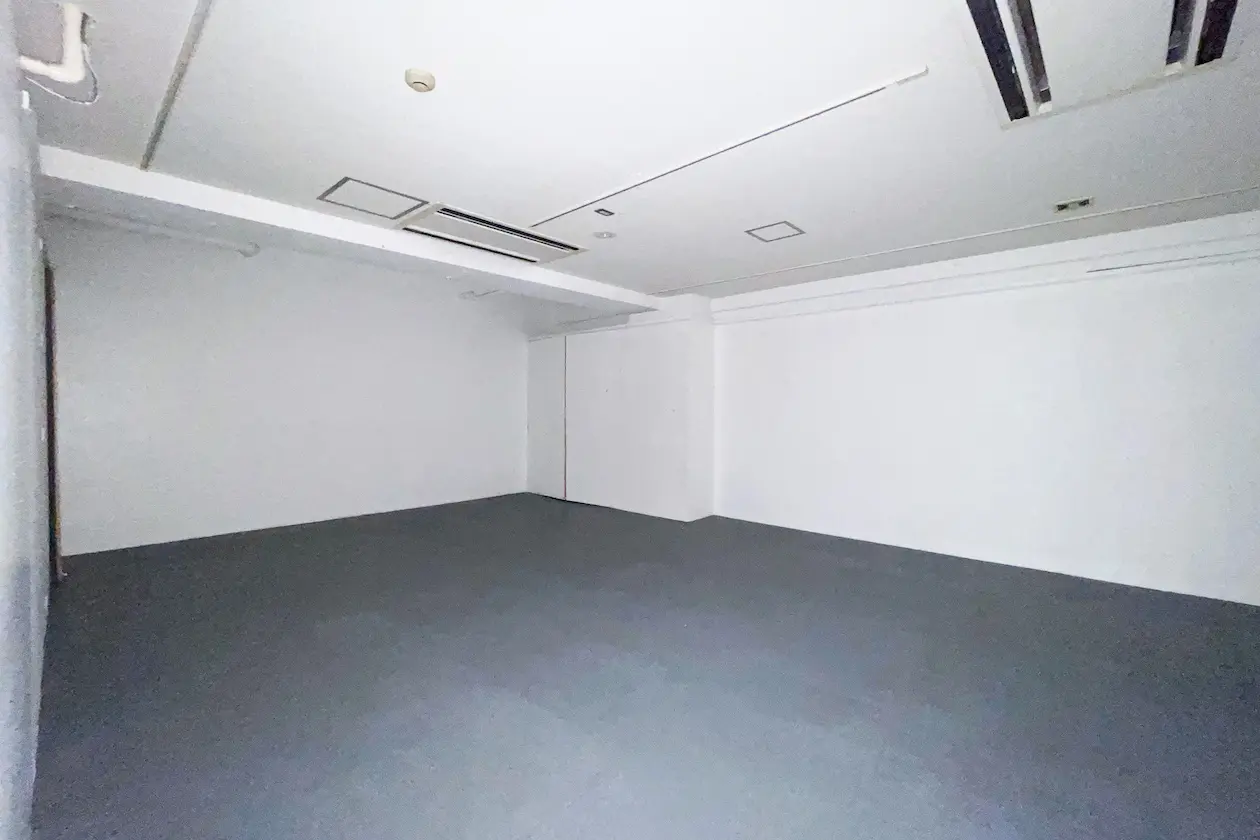 先ほどの室内写真とは打って変わって壁・床ともにシンプルな仕様で、自由度が高くオフィスワークやショールームとしても利用できます。
