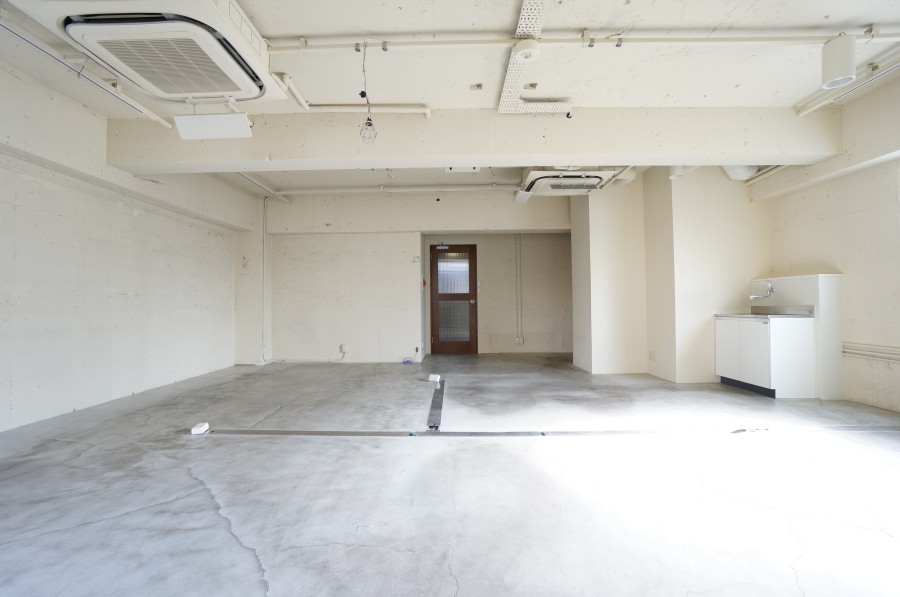 スケルトン扱いにはなるが、エアコン2台、ミニキッチン、トイレ、ライティングレールと必要最小限の設備は揃っている。