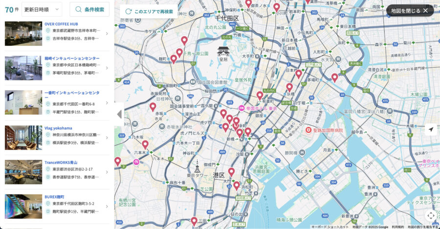 直感的な地図検索と豊富な絞り込み機能で、あなたにぴったりのワークスペースをスピーディーに見つけられます。