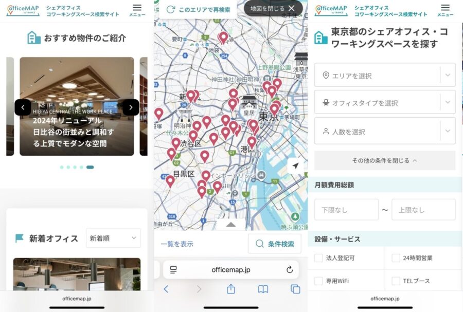 オフィスマップは、全国のシェアオフィス、コワーキングスペース、レンタルオフィスなど、フレキシブルオフィスに特化した検索プラットフォームです。
