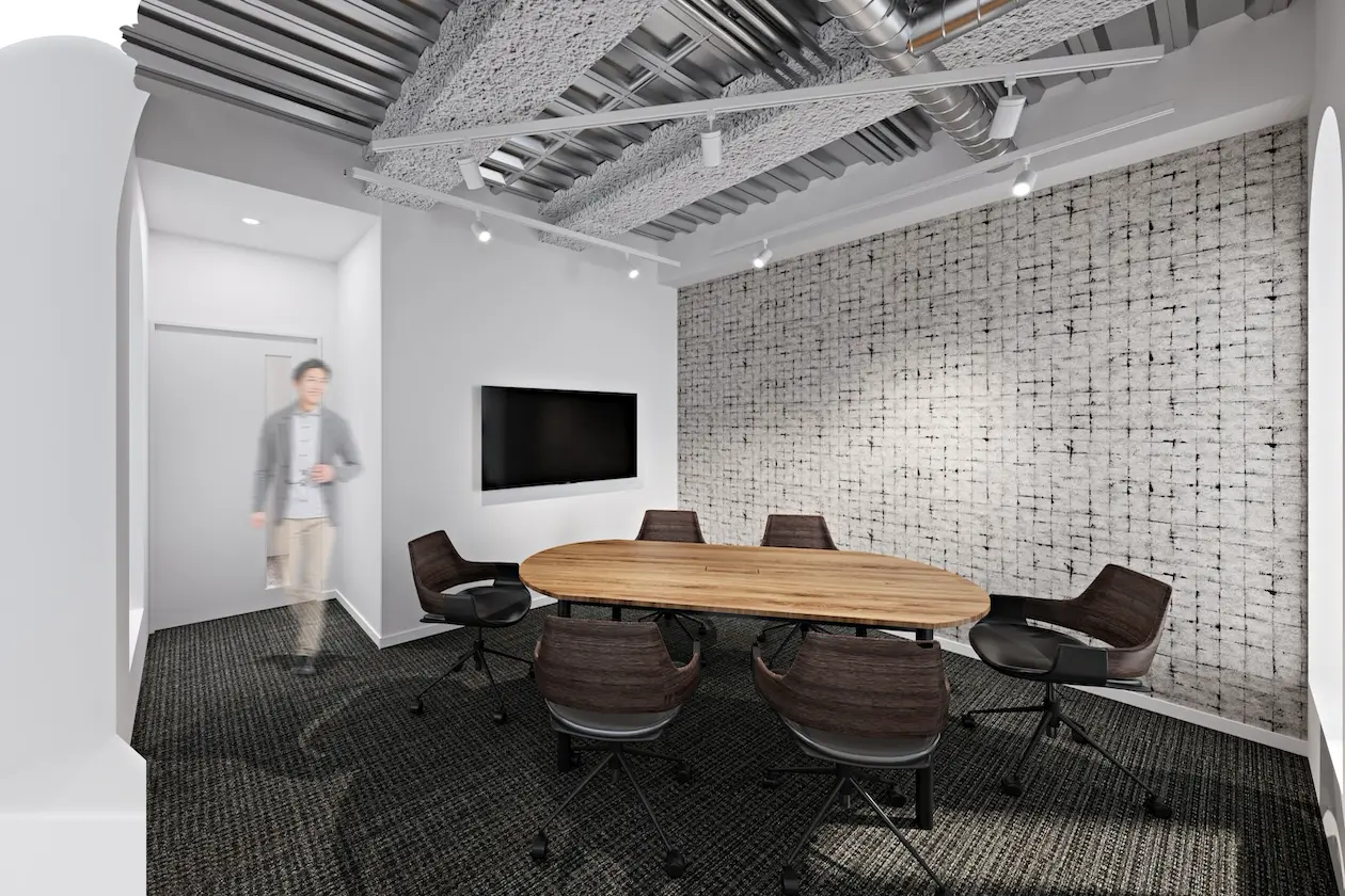 6名用の会議室にはモニターも設置されているため、オンライン会議や資料を用いたプレゼンテーションもスムーズに行えます。