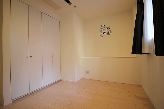 斜めの柱の先、すりガラスの扉が2つあり8.6帖と10.6帖のお部屋があります。広い方のお部屋入り口には大容量のウォークインクローゼットが付きます。それぞれ住居スペースかミーティングルームなどとできそうです。