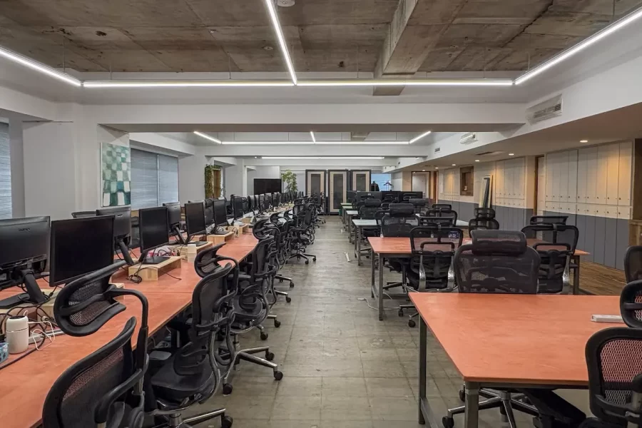 別室の執務スペースは10数名程度の規模感になります。写真にはありませんが別で社長室となる1室も。