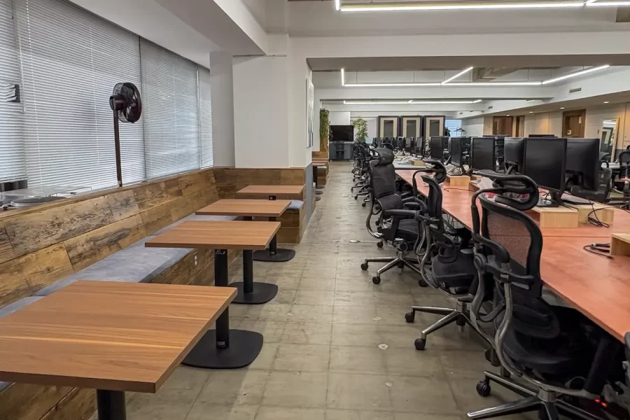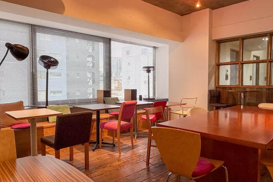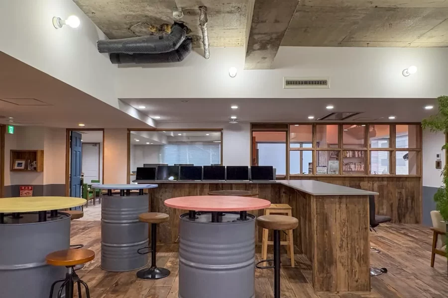 こちらはカフェのような内装で一気にポップな様相となる従業員の休憩スペース。