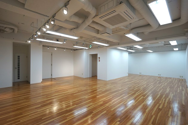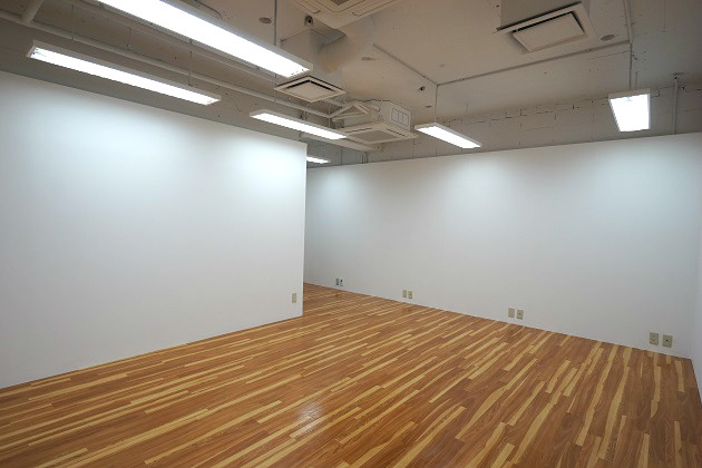 一方こちらは蛍光灯のみで壁紙も貼られており、いたってシンプル。仕切りをつけてこちら側を会議室として利用なども良さそうですね。