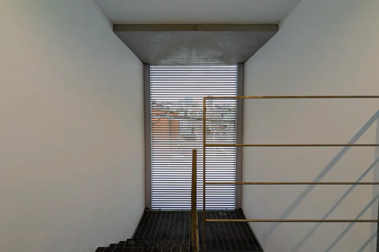 エレベーターなしの3階。階段はルーバー仕様になっており、デザイナーズならではのこだわりが垣間見えます。