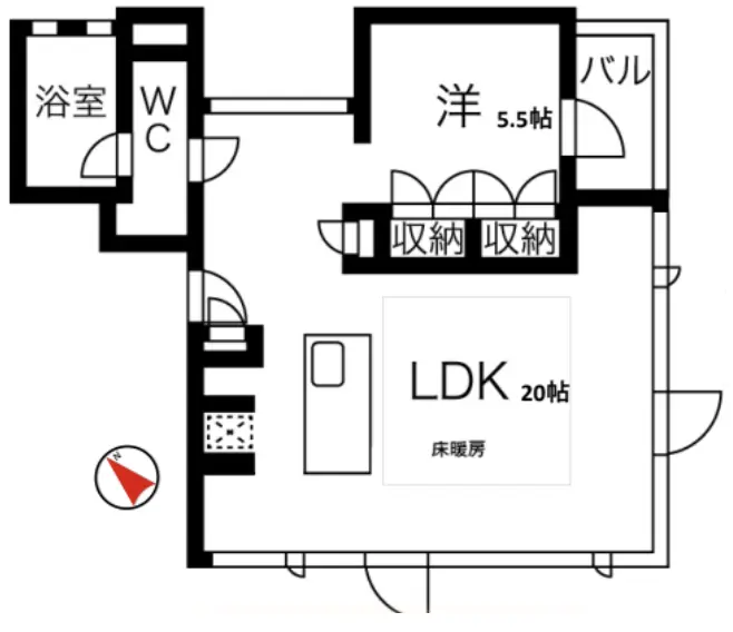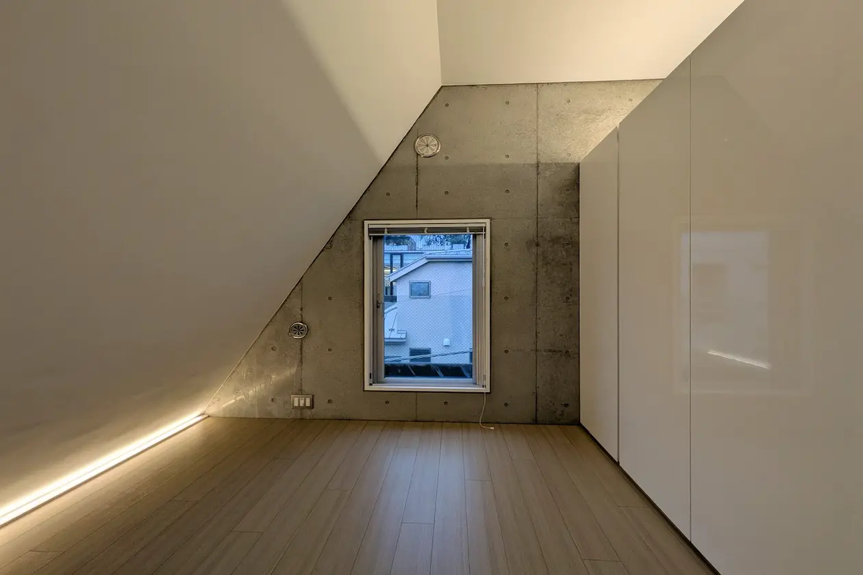 傾斜壁と大きな収納が特徴で、SOHOであればベッドスペースや執務スペースとなる広さです。