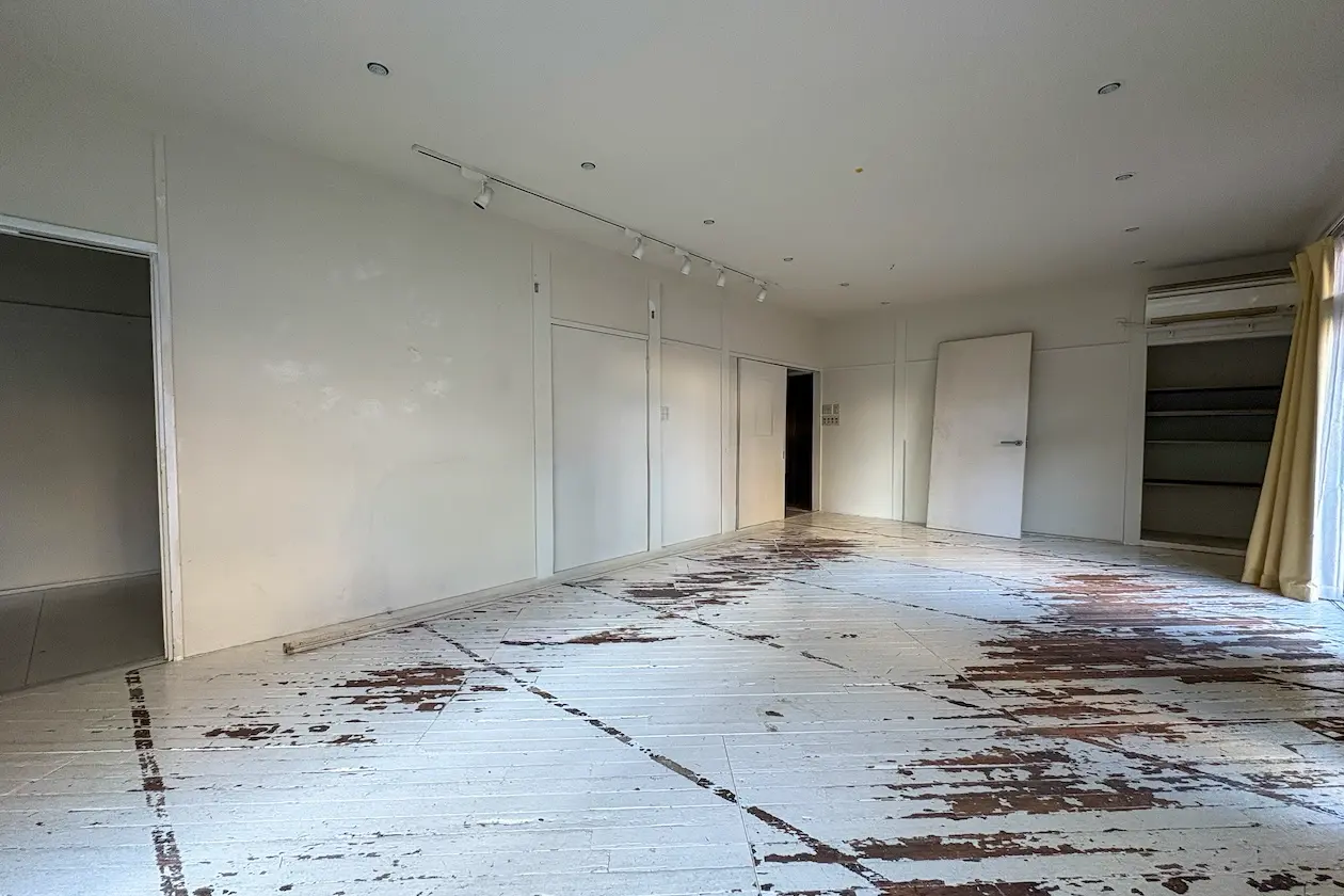 ↑ 室内原状回復中の写真です。(床塗り直し・壁修復後にお引き渡し)