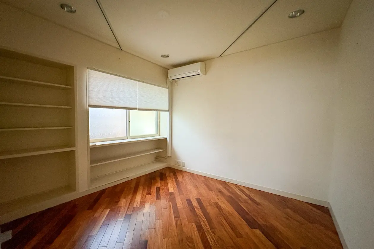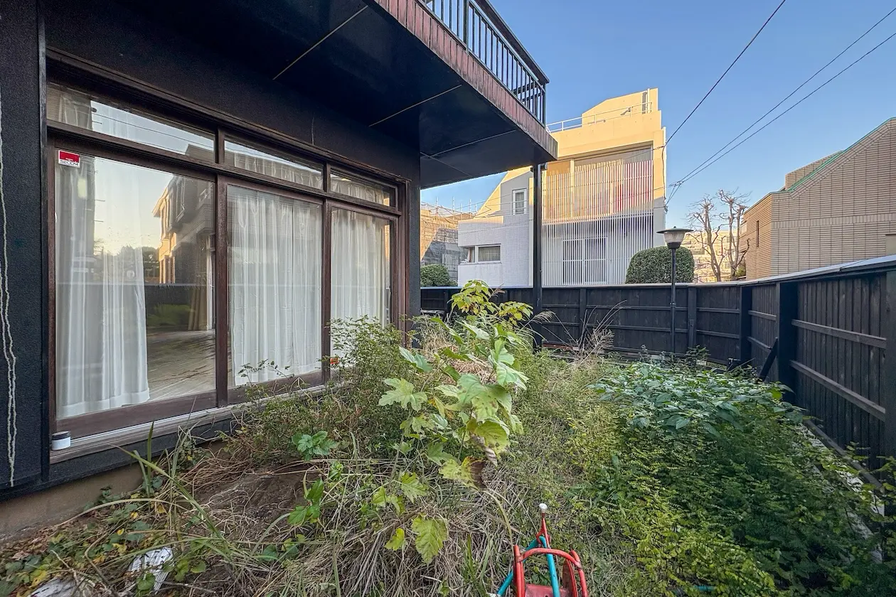 1階のメインルームに面して、小さな専用庭が設けられています。現在は植栽が自然のまま育っている状態ですが、「南青山で庭のある戸建」という希少性の高い物件といえます。