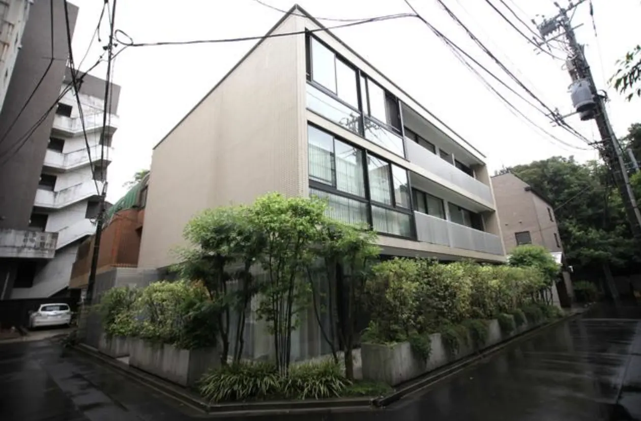 南青山の閑静な住宅街に建つRC造3階建ての低層マンション。