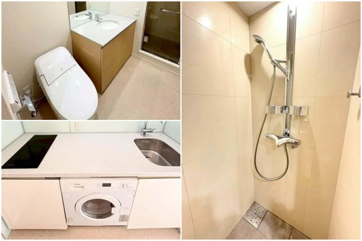 パウダールーム付きのトイレ、シャワールームが機能的にまとめられ、水廻りは清潔感と実用性を両立。長時間滞在するオフィス利用でも快適な設備が揃います。