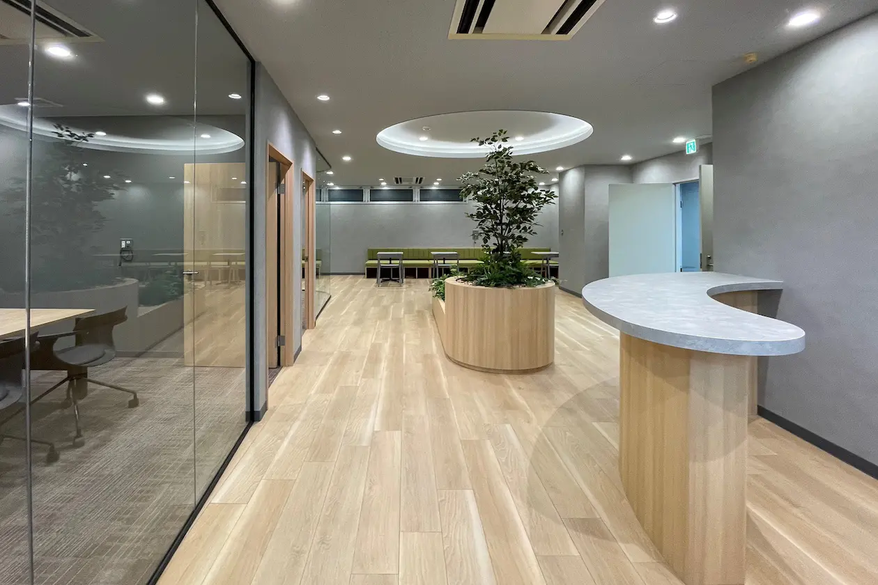 内装は主張しすぎない落ち着いたトーンでまとめられており、業種や企業フェーズを問わず、自社らしい使い方へ柔軟にカスタマイズしやすい点も魅力です。
