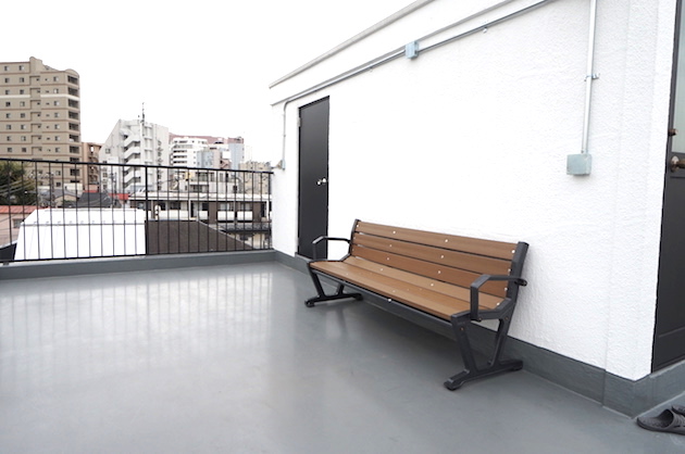 屋上にあるバルコニーはこの建物の入居者全員が使えるフリースペースとなっています。
