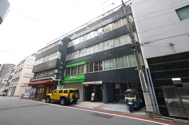 外観はシンプルで、内装とのギャップがいい感じです。「信愛ビル」の文字がレトロな雰囲気。
