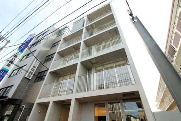 打放コンクリートのスタイリッシュな外観。1Fは路面店が入居するため、街行く人の目を引くでしょう。