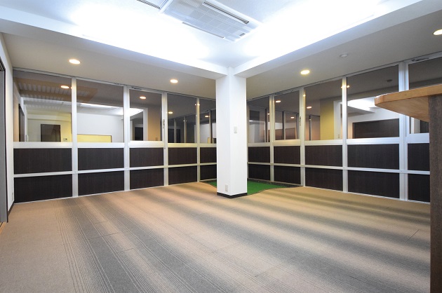 約19帖あるこちらのリビングは、メインのワークスペースとして、5,6人程度でデスクを並べてはいかがでしょうか。