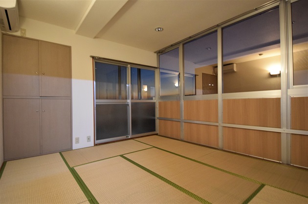 本物件の特徴として、空を眺めながらくつろげる畳スペースも。
