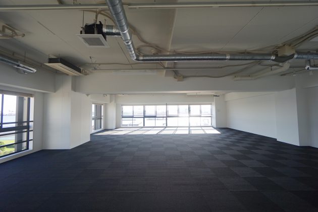 また上の写真は131㎡の区画。先ほどの134㎡の部屋と隣り合っており、壁を抜いて一つの空間とすることも相談できるとのことです。100坪程の空間をお探しの方には朗報といえそうです。