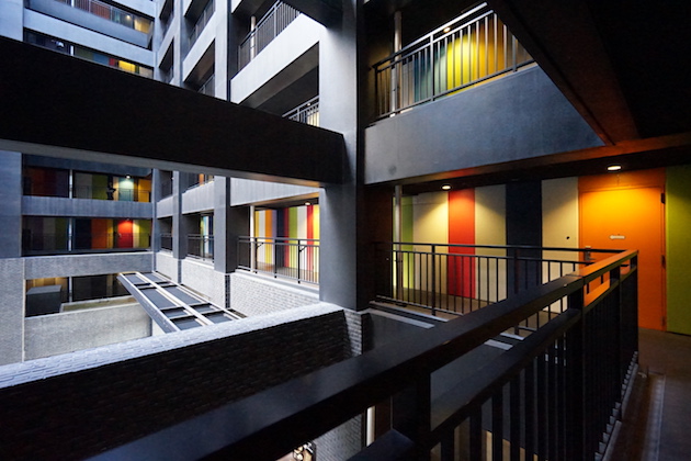 エレベーターを降り、お部屋に向かいます。カラフルな扉で彩られた廊下が、毎日のモチベーションを上げてくれるかもしれません。