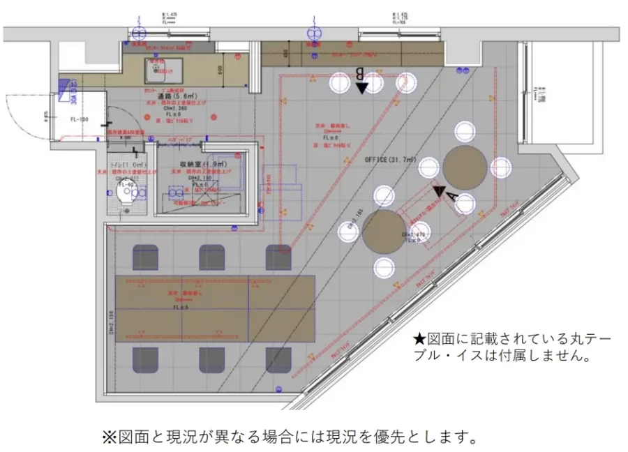 広さはオフィススペースで約31㎡と4〜7名程度の利用が可能となります。