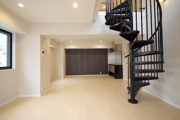 上下階共に20帖オーバーの綺麗な間取りを持つ新築メゾネット。