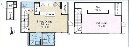 六本木エリアの新築テラスハウスSOHO、使い勝手の良い1LDKプランで働く。