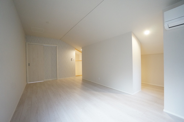 最上階のため一部傾斜天井となっており、それを活かしたデザインが特徴的。