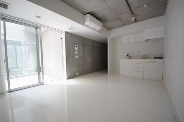 コンクリート打ち放しとホワイトでまとめられたシンプルな室内です。